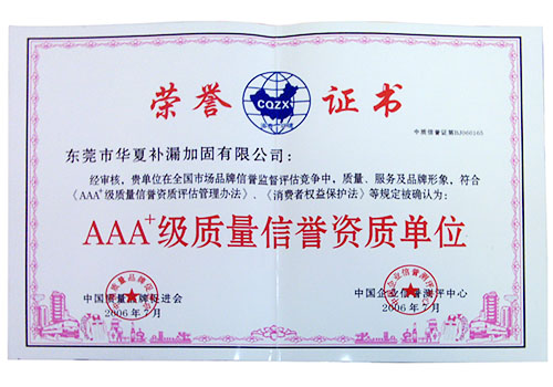 AAA+級(jí)質(zhì)量信譽(yù)資質(zhì)單位
