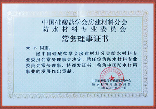 防水材料專業(yè)委員會(huì)常務(wù)理事證書