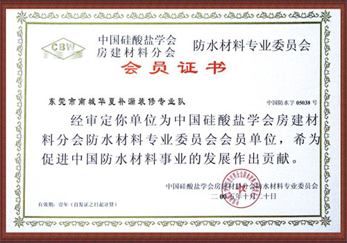 防水材料專業(yè)委員會(huì)會(huì)員證書