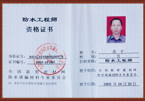 防水工程師資格證書