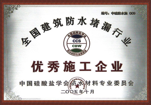 全國防水堵漏優(yōu)秀施工企業(yè)獲獎證書